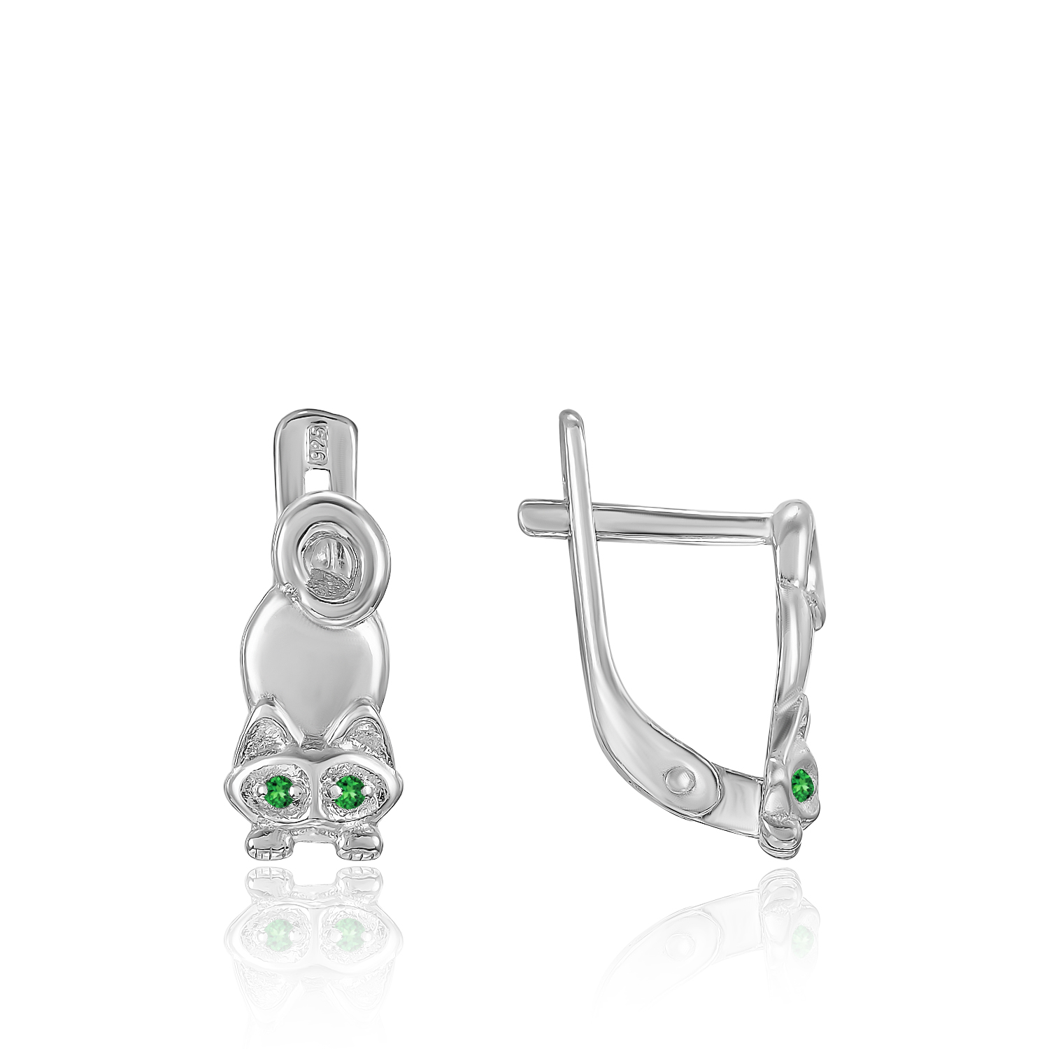 Серьги Кися зелёный Серебро 925, артикул 300991